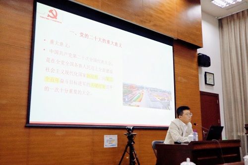 張龍教授從“黨的二十大的重大意義、黨的二十大報(bào)告的重要論斷和重大創(chuàng)新、如何準(zhǔn)確完整學(xué)習(xí)貫徹黨的二十大精神”等三個(gè)方面做了深入淺出的分析和解讀,同時(shí)將黨的二十大精神與廣東省、珠海市的發(fā)展實(shí)際相結(jié)合,重點(diǎn)詮釋了特區(qū)精神,分析了珠海城市發(fā)展的優(yōu)勢(shì),也解讀了“產(chǎn)業(yè)第一、交通提升、城市跨越、民生為要”工作總抓手的目的和意義。講座主題鮮明,點(diǎn)面結(jié)合,以豐富的案例、詳實(shí)的數(shù)據(jù)和通俗的講解,使大家對(duì)黨的二十大精神的核心要義、精神實(shí)質(zhì)、豐富內(nèi)涵和實(shí)踐要求有了更深入的理解。