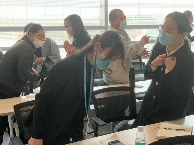 本次課程分為禮儀與情商、職場印象管理和有效溝通技巧三部分。王彥群老師先用生動幽默的語言講授了禮儀與情商的深層蘊(yùn)意,禮儀的根本是尊重-尊重他人、尊重自己、尊重所有人,在與人交往中要有主動意識,懂得換位思考。之后王彥群老師用現(xiàn)場教學(xué)的方式,向?qū)W員們傳授商務(wù)著裝技巧及職場舉止注意要點(diǎn),以提升職場印象。在最后的溝通技巧環(huán)節(jié)中,王彥群老師通過小組展示練習(xí)和互動游戲,讓學(xué)員體會“問答贊”、“說聽答”的重要性,從而掌握有效溝通的技巧。在3個小時(shí)的培訓(xùn)過程,現(xiàn)場氣氛活躍熱烈,參訓(xùn)學(xué)員在高漲的學(xué)習(xí)氛圍中掌握了許多實(shí)用性技巧的禮儀知識,效果顯著,獲得了參訓(xùn)學(xué)員的一致好評。