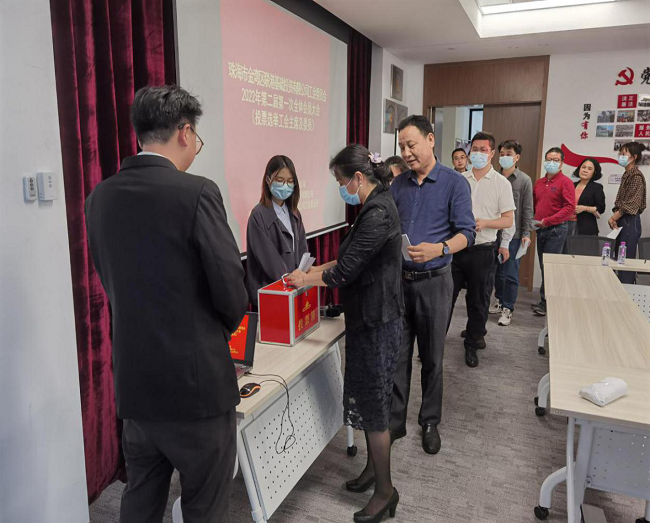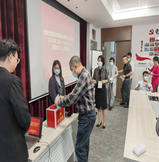 會(huì)議伊始,主持人宣讀了區(qū)總工會(huì)《關(guān)于聯(lián)港基礎(chǔ)投資有限公司工會(huì)第二屆委員會(huì)補(bǔ)選委員、工會(huì)主席及候選人推薦人選請(qǐng)示的批復(fù)》,與會(huì)會(huì)員按程序通過(guò)舉手表決方式,全票通過(guò)了《聯(lián)港基礎(chǔ)投資有限公司工會(huì)第二屆委員會(huì)委員及主席補(bǔ)選辦法》,第二屆委員會(huì)委員及主席候選人建議名單,選舉總監(jiān)票人、監(jiān)票人、唱票人、計(jì)票人名單,并鄭重投出了自己的選票。